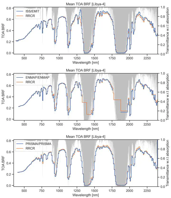 Accurate hyperspectral simulations are critical for the vicarious calibration of next-generation space-based sensors and for ensuring the long-term consistency of climate data records. This study presents a refined methodology to generate simulated radiometric calibration references over bright desert pseudo-invariant calibration sites, specifically designed to meet the stringent accuracy requirements of hyperspectral observations. Building on metrology principles, and in the absence of SI-traceable references, the approach leverages simulated reflectance over stable desert targets as a community-accepted calibration reference. Key advancements include improved surface reflectance modelling using the Rahman–Pinty–Verstraete model and the Combined Inversion of Surface and Aerosol (CISAR) algorithm, enhanced atmospheric property characterization from multiple state-of-the-art datasets, and the use of the Eradiate Monte Carlo-based radiative transfer model. These refinements reduce uncertainty in simulated top-of-atmosphere reflectance, achieving an accuracy within ±3% in high-transmittance spectral regions. Validation against both multispectral and hyperspectral satellite data (i.e., EMIT, EnMAP, and PRISMA) confirms the robustness of the methodology. This work establishes a reliable framework for hyperspectral sensor calibration and intercalibration, addressing the pressing need for traceable, high-fidelity reference data in Earth observation.